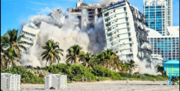 Paya del Carmen, Quintana Roo – Un video que se viralizó en redes sociales mostró el momento exacto en que una implosión controlada redujo a escombros la estructura