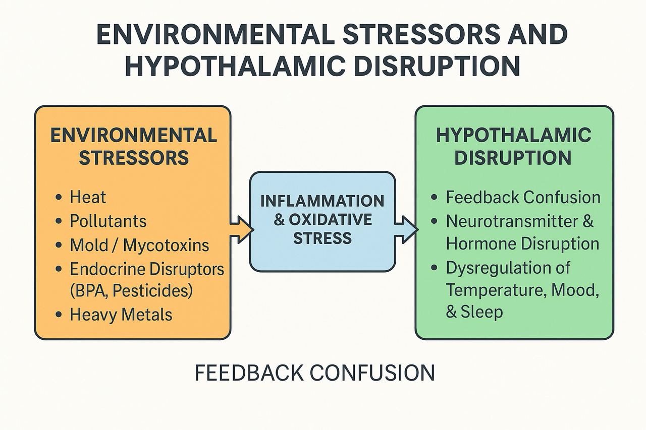 Hot flashes are often viewed as a symptom exclusive to menopause — a fleeting, uncomfortable surge of heat linked to hormonal changes in women. Yet, more people today, including men, are experiencing chronic heat surges, night sweats, and thermoregulatory instability without any direct hormonal cause. Emerging evidence suggests that environmental stressors and toxic exposures may play a major role by disrupting the brain’s temperature control center — the hypothalamus.